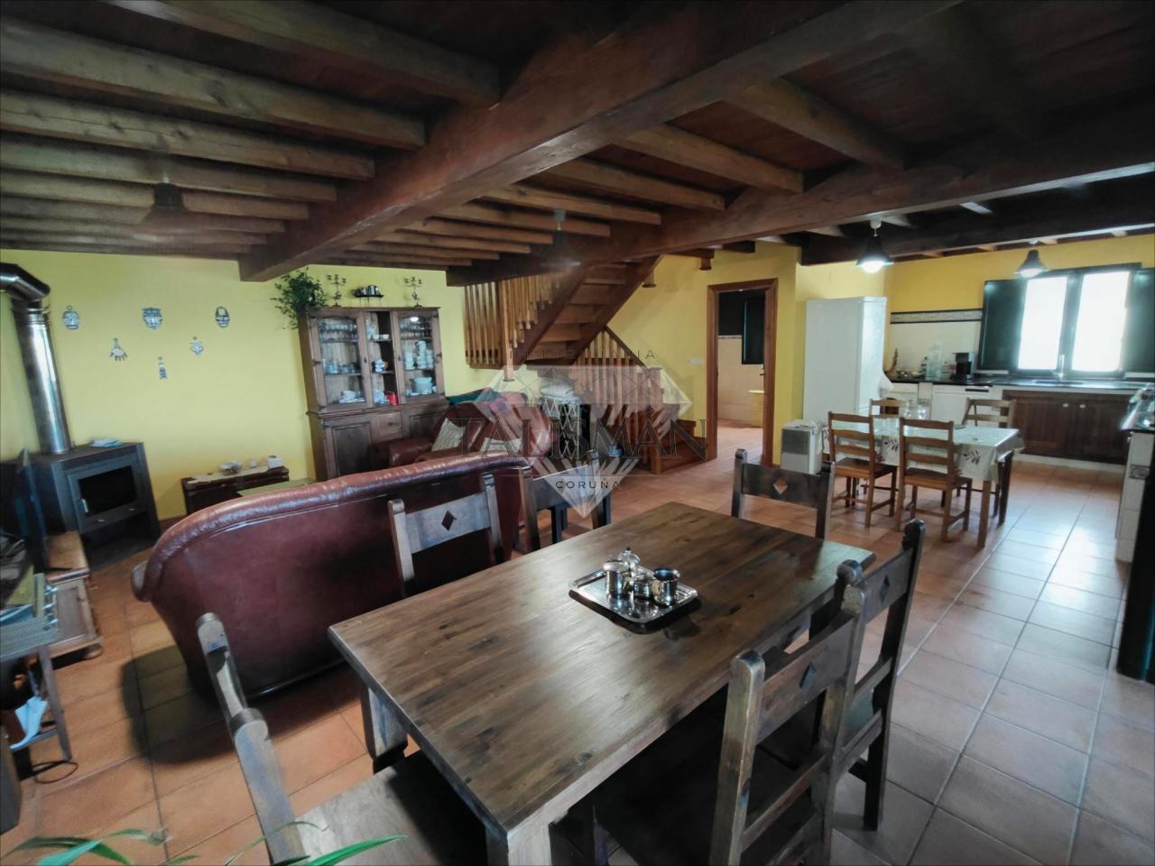 DISPONE DE VENTANAS DE ALUMINIO, SUELOS CERÁMICO EN PLANTA BAJA Y CASTAÑO EN PLANTA SUPERIOR, CALEFACCIÓN ELÉCTRICA Y DE LEÑA Y LAVAVAJILLAS.